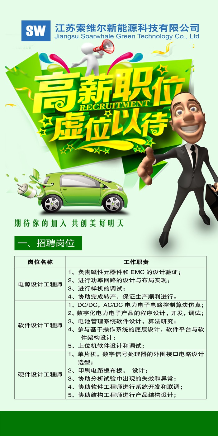 3月上旬,索維爾全資子公司——上海藍驅(qū)新能源科技有限公司啟動2017春季校招工作,走進同濟、上海理工、浙大、復(fù)旦等知名院校開展校園宣講和招聘活動。主要招聘崗位是電源設(shè)計工程師、軟件設(shè)計工程師和硬件設(shè)計工程師。